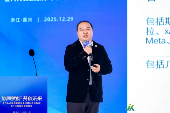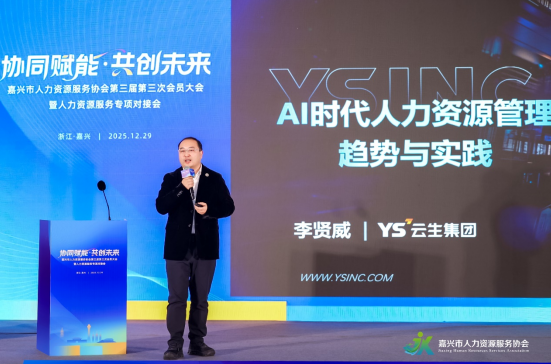 12月29日,嘉兴市人力资源服务协会第三届第三次会员大会暨人才专项对接活动成功举办。云生集团创始人、CEO李贤威受邀出席本次活动并发表主题分享,与嘉兴市人社领域政府代表、行业精英及企业负责人共探人力资源服务高质量发展路径,分享AI技术赋能人力资源行业的前沿实践与未来趋势。